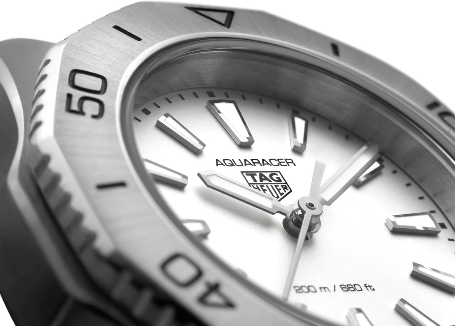 Женские швейцарские часы TAG Heuer Aquaracer Professional 200 WBP1411.BA0622, кварцевый механизм с высокой точностью. Сапфировое стеклоСапфировое стеклоПрочный и надёжный материал из кристалла сапфира синтетического происхождения, характеризующийся особой твёрдостью и устойчивостью к царапинам и повреждениям. устойчивое к появлению царапин, обладающее высокой прозрачностью. Класс водозащиты: 200 метров, позволит плавать, нырять и заниматься другими водными видами спорта. Корпус часов изготовлен из стали. Стальной браслет на раскладной застёжкеРаскладная застёжкаТакой тип застёжки используется только на браслетах из металла. Она никогда не раскрывается полностью, происходит разделение на 2 и более частей. Раскладывающая застёжка снизит вероятность потери часов к минимуму.. Стальной рифленый вращающийся 12-гранный безельБезельВнешний ободок, закрепляющий стекло. В спортивных часах так называется поворотное кольцо с делениями на циферблате, выполняет роль таймера – замеряет отрезки времени на шкале. Неподвижный безель – элемент декора. Однонаправленно вращающийся безель на дайверских часах позволяет фиксировать моменты погружения и выныривания на поверхность. с минутной шкалой выполнен с радиальным сатинированием поверхности. Циферблат выполнен по технологии Sunray (солнечные лучи). Метки в виде штрихов. Стрелки и метки с родиевым и люминесцентным покрытиемЛюминесцентное покрытиеПозволяет считывать показания времени в темноте. Производители наносят на стрелки, часовые индексы, безель или поверхность циферблата светонакопительный состав, дающий холодное свечение. Superluminova. Рифленая заводная головка с защитой. Задняя крышка украшена выгравированной 8-лучевой розой ветров на фоне узора сотовой структуры.