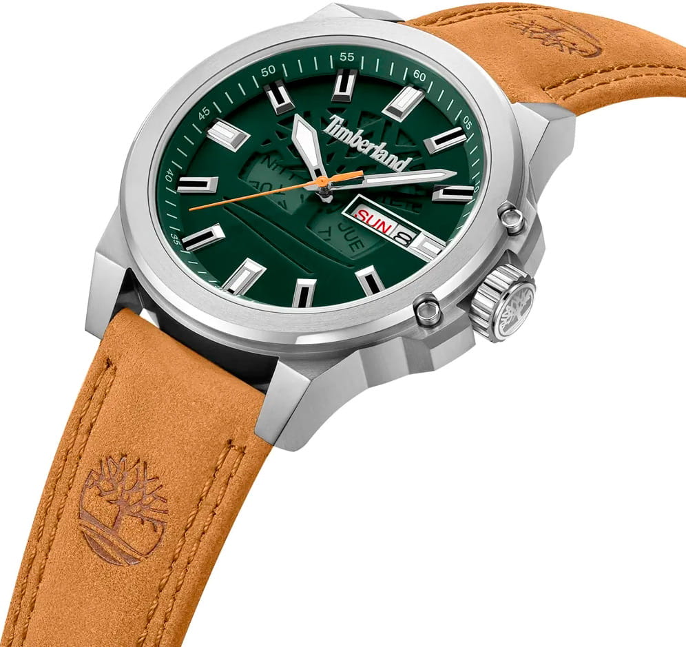 Мужские часы Timberland Canfield TDWGB0040802, кварцевый механизм с высокой точностью. Минеральное стеклоМинеральное стеклоМинеральное стекло представляет собой искусственно выращенный минерал кварца. Такое стекло отличается особой устойчивостью к повреждениям и царапинам. Уступает по некоторым качествам сапфировому стеклу.. Класс водозащиты: 50 метров, позволит защитить корпус от случайных брызг или капель дождя. Люминесцентная подсветкаЛюминесцентное покрытиеПозволяет считывать показания времени в темноте. Производители наносят на стрелки, часовые индексы, безель или поверхность циферблата светонакопительный состав, дающий холодное свечение. стрелок и меток на циферблате. Корпус часов изготовлен из нержавеющей стали. Кожаный ремешок на стандартной застёжке. Окошко даты находится в положении 3 часа.