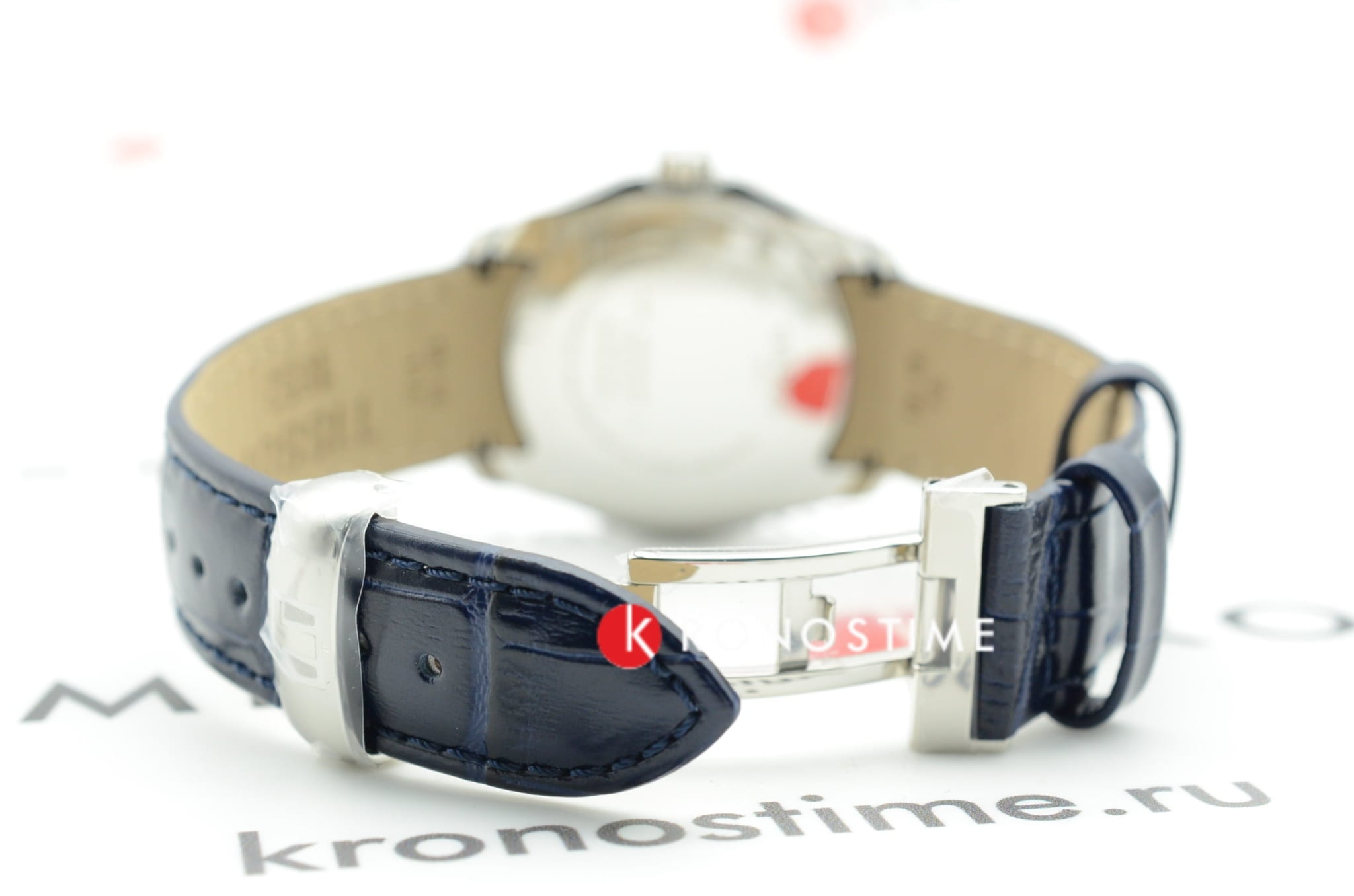 Ярко-синее исполнение модели приковывает взгляды окружающих, насыщенный цвет поможет разбавить строгий наряд без отхождения от общей классической концепции. Серебристые стрелки и часовые метки обеспечивают идеальную читаемость часов, минут, секунд и даты. Ремешок из натуральной кожи. Водонепроницаемость при давлении 10 бар на глубине 100 метров. Циферблат покрывает надёжное сапфировое стекло.