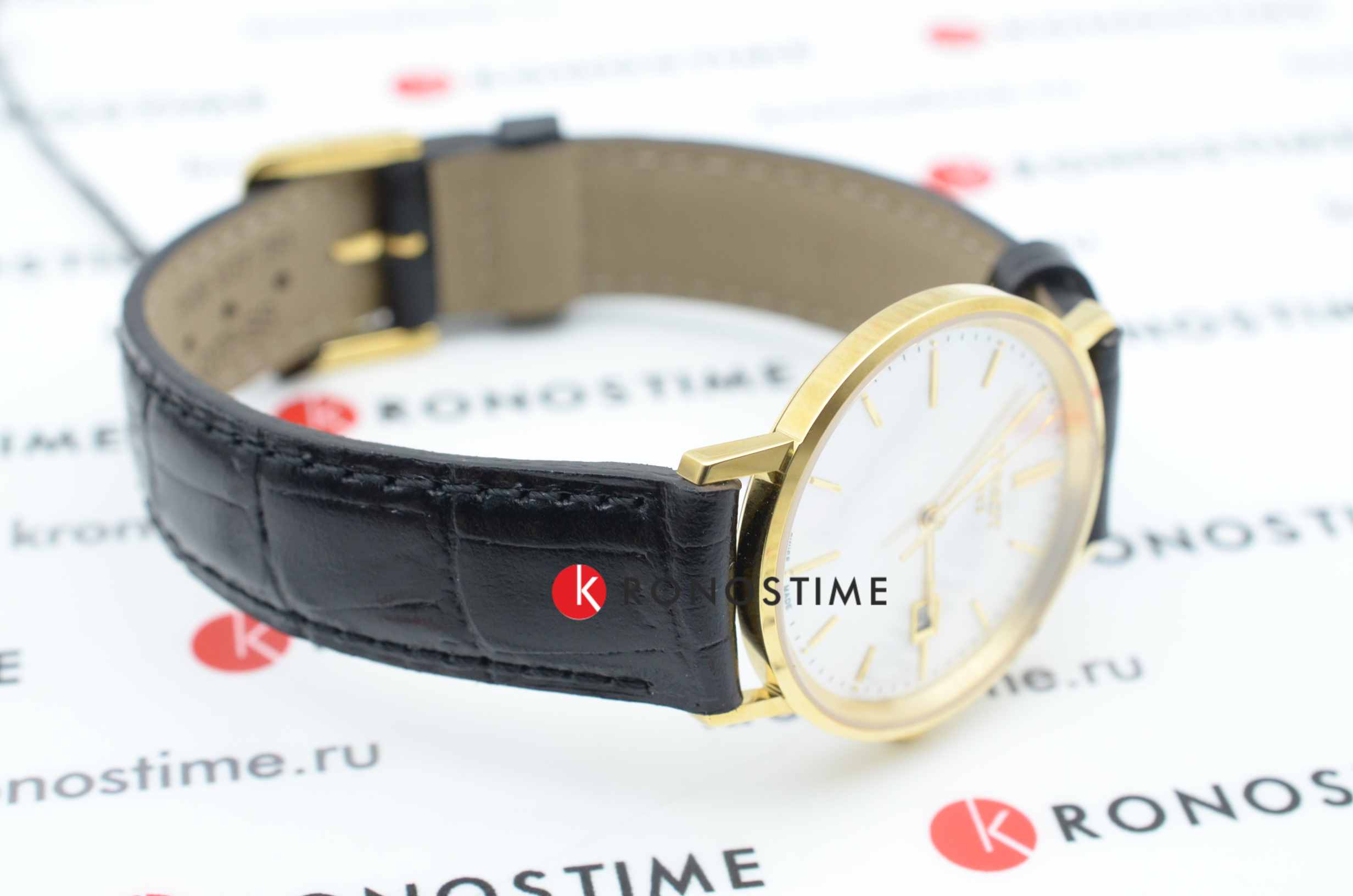 , атрибут богатства и роскоши. Высокая точность хода обеспечивается благодаря работе кварцевого механизма ETA E61.111. Сапфировое стекло устойчиво к царапинам. Чёрный ремешок из натуральной кожи. Перламутровый циферблат. Индикатор EOLEOLПредставляет собой систему, уведомляющую владельца часов о необходимости замены элемента питания. За 2 недели до полного разряда батарейки секундная стрелка перестаёт ходить чётко и начинает перепрыгивать на 3-4 деления.. Отображение числа. Габариты: 29 x 29 x 4,9 мм.