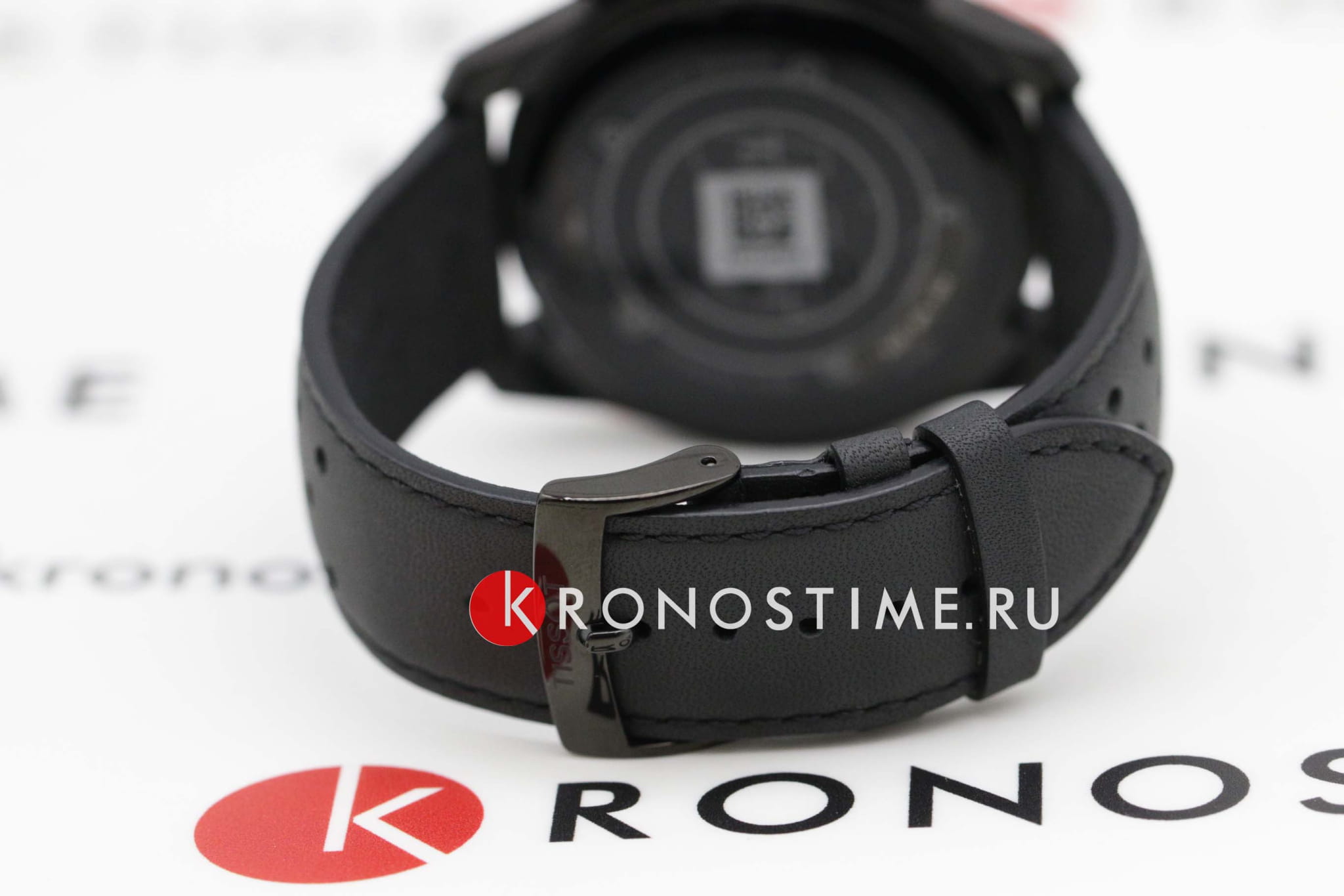 Стильный аксессуар полностью выполнен в чёрном цвете, исключение составляют лишь серебристые часовые метки и стрелки, а также ободок счётчиков хронографаХронографФункция позволяет измерять отрезки времени с особой точностью: часы, минуты, секунды. Верным признаком хронографа является наличие на циферблате 3 дополнительных окошек-счётчиков.. Подобный дизайн считается универсальным, что делает возможным носить часы с любой одеждой. Кварцевый механизм ETA G10.212. PVD-покрытиеPVDУльтратонкое покрытие наносится в технике вакуумного напыления, сочетает в себе нитрид титана особой прочности со слоем золота или оксида хрома. Несёт в себе декоративную или защитную функцию. корпуса. Люминесцентная подсветкаЛюминесцентное покрытиеПозволяет считывать показания времени в темноте. Производители наносят на стрелки, часовые индексы, безель или поверхность циферблата светонакопительный состав, дающий холодное свечение.. Опции: секундомер, тахиметрТахиметрРазмеченная шкала, располагается на ободке или безеле часов. Тахиметр позволяет рассчитать скорость на определённом участке пути, расстояние измеряется в километрах или милях., индикация даты. Габариты: 42,5 x 42,5 x 11,2 мм.
