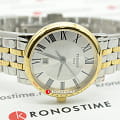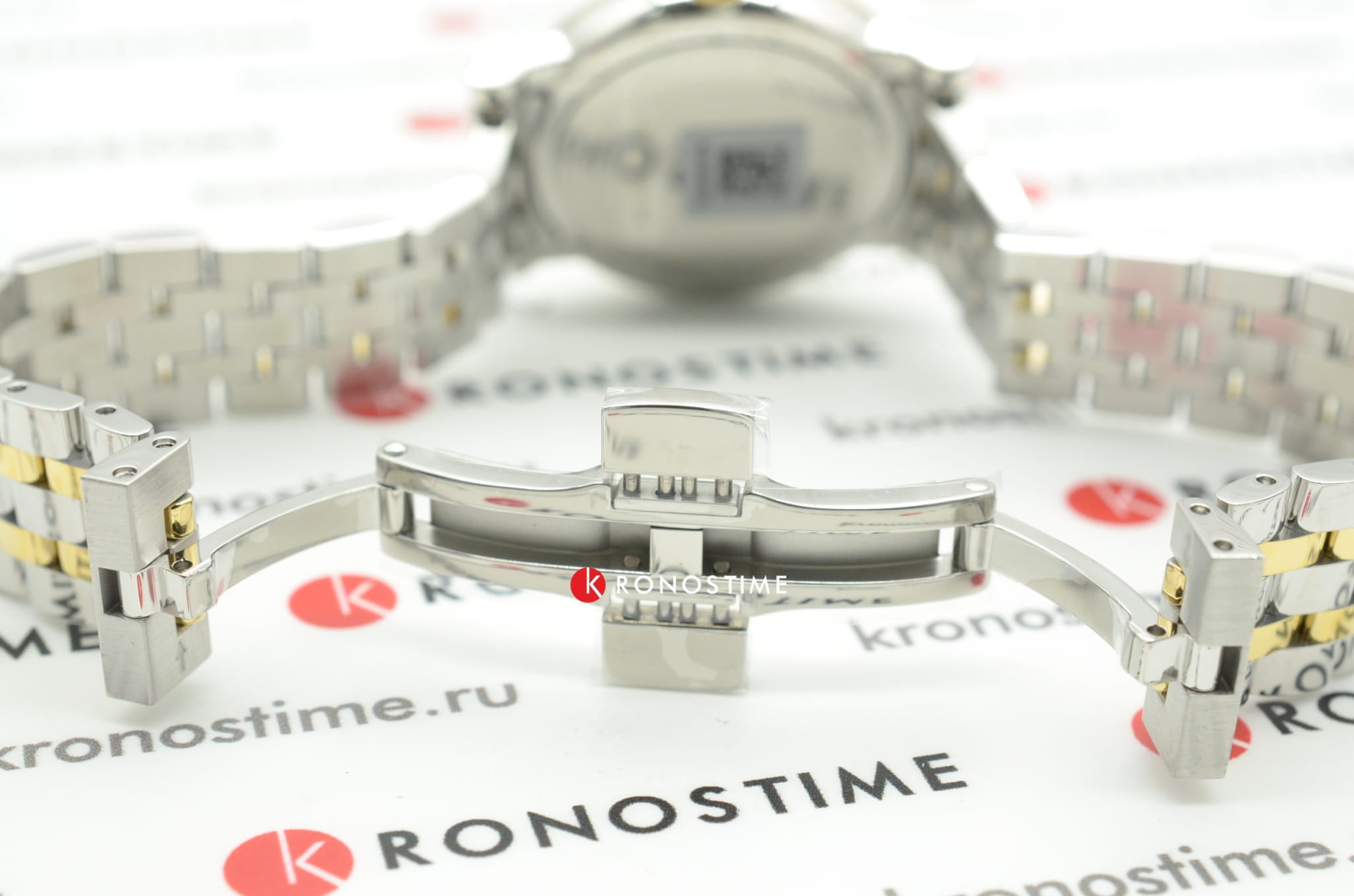 Двухцветная модель выполнена в классическом стиле, тонкий стальной браслет стал идеальным вариантом для компактного белого циферблата. Оригинально смотрятся чёрные удлинённые стрелки. Часы оснащены кварцевым механизмом ETA F03.115, позволяющим измерять время с особой точностью. Прочное стекло из сапфира. Водонепроницаемость 50 метров. PVD-покрытиеPVDУльтратонкое покрытие наносится в технике вакуумного напыления, сочетает в себе нитрид титана особой прочности со слоем золота или оксида хрома. Несёт в себе декоративную или защитную функцию.. Отображение даты, индикатор EOLEOLПредставляет собой систему, уведомляющую владельца часов о необходимости замены элемента питания. За 2 недели до полного разряда батарейки секундная стрелка перестаёт ходить чётко и начинает перепрыгивать на 3-4 деления.. Габариты: 30 x 30 x 6,7 мм.