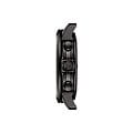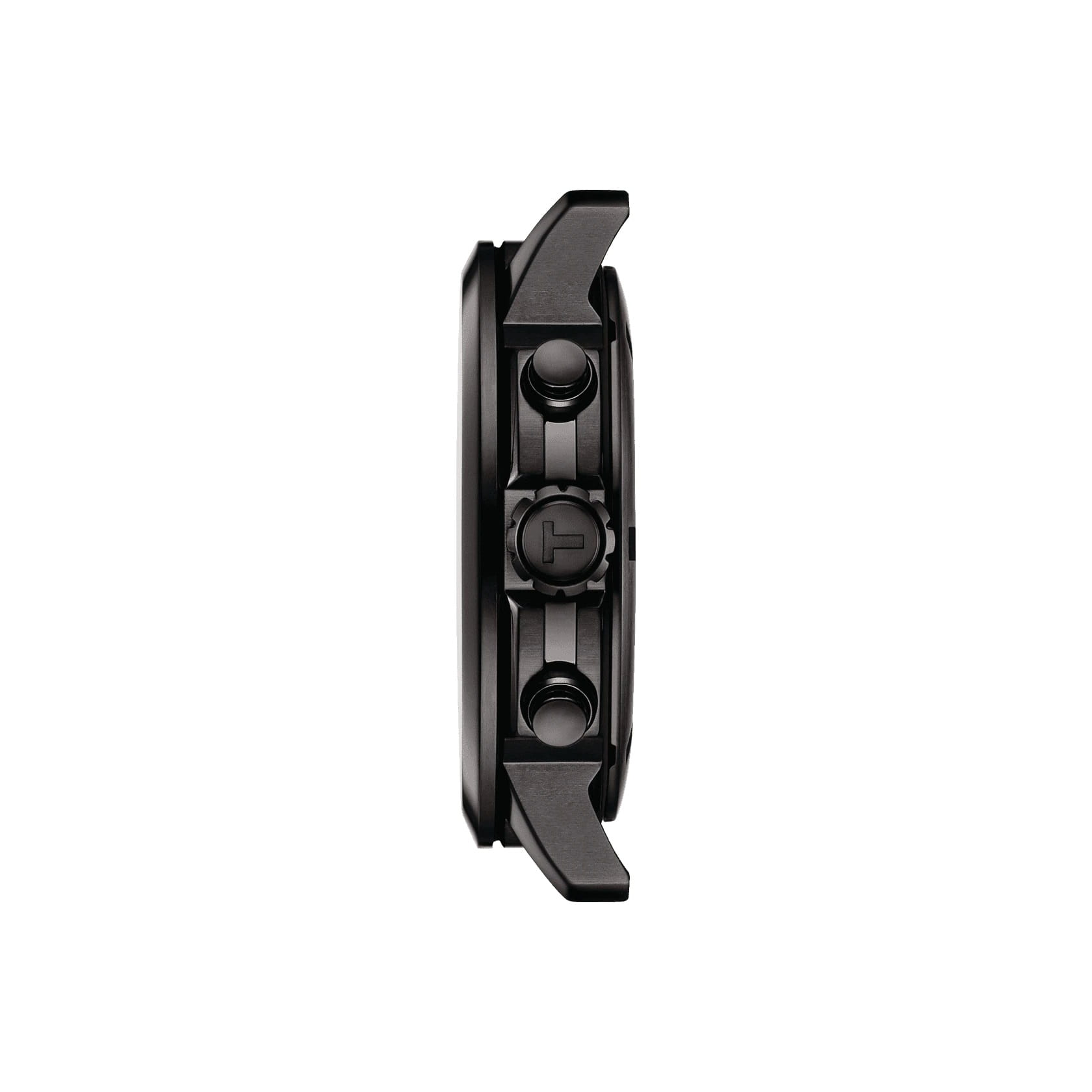 Эффектное чёрное исполнение модели делает её идеальным вариантом для дополнения любого образа. Спортивный хронографХронографФункция позволяет измерять отрезки времени с особой точностью: часы, минуты, секунды. Верным признаком хронографа является наличие на циферблате 3 дополнительных окошек-счётчиков. обладает водонепроницаемостью при давлении 20 бар на глубине 200 метров, часы подходят для плавания и дайвинга. Кварцевый калибр ETA G10.211. Хирургическая сталь 316 L. Завинчивающаяся заводная головка и задняя крышка. Секундомер, тахиметрТахиметрРазмеченная шкала, располагается на ободке или безеле часов. Тахиметр позволяет рассчитать скорость на определённом участке пути, расстояние измеряется в километрах или милях., апертура даты. Габариты: 43 x 42 x 12 мм.
