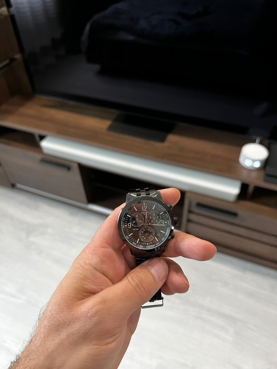 Чёрные, стальные хронографы с хорошей водозащитой (до 200м.) и надёжным кварцевым механизмом.
