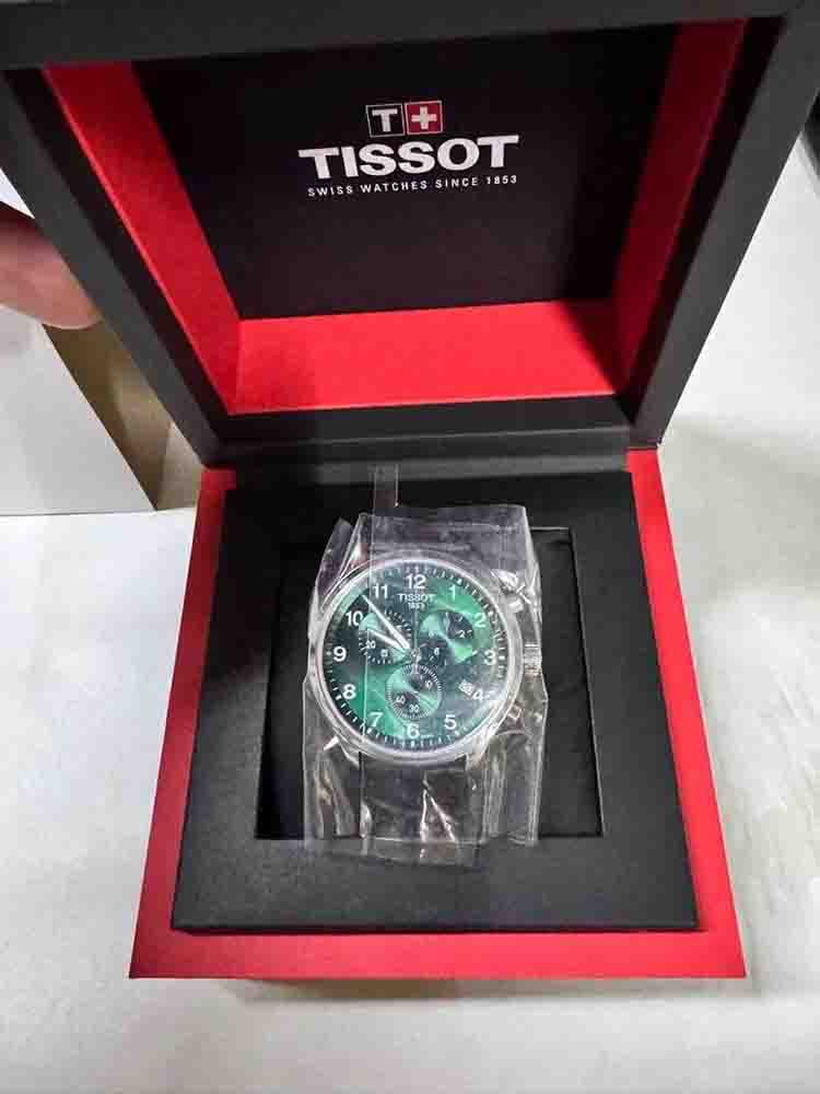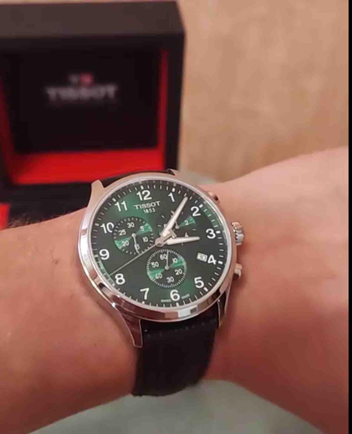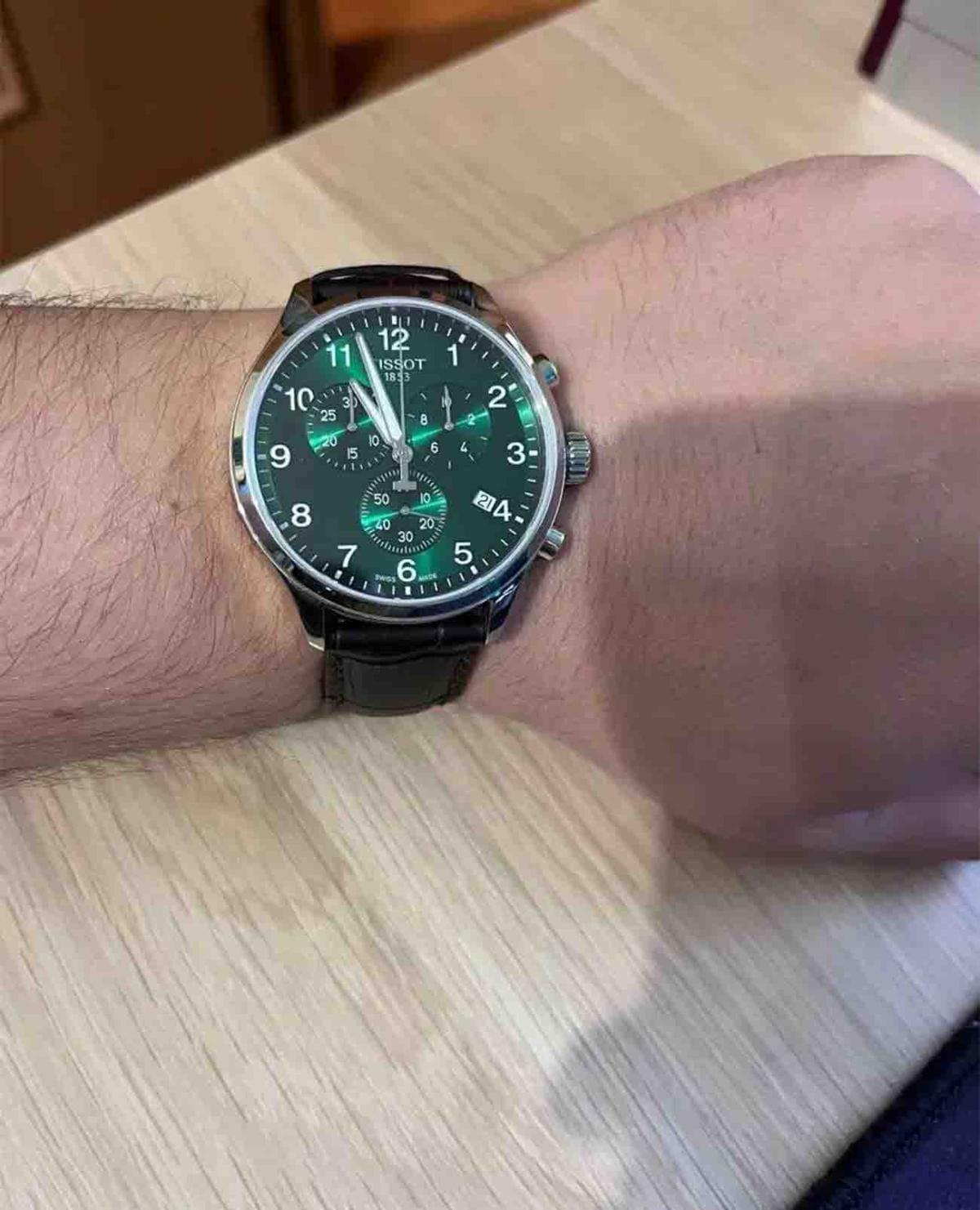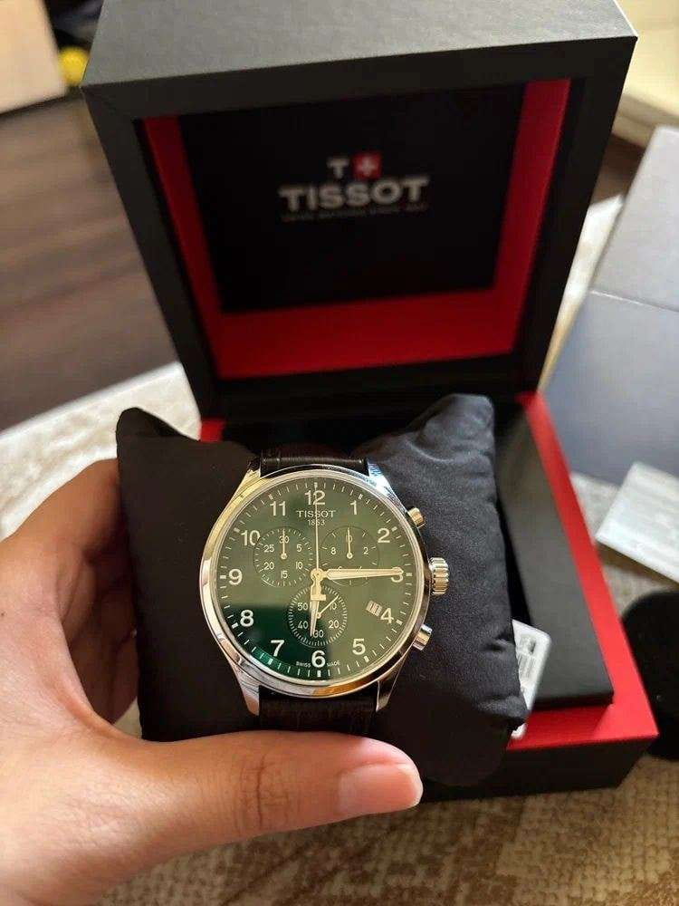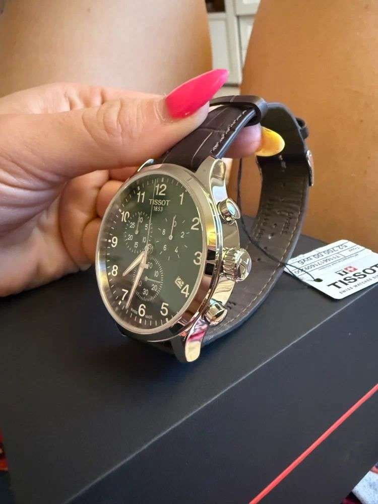 Мужские наручные часы-хронографХронографФункция позволяет измерять отрезки времени с особой точностью: часы, минуты, секунды. Верным признаком хронографа является наличие на циферблате 3 дополнительных окошек-счётчиков. Tissot T116.617.16.092.00 из коллекции Chrono XL Classic сочетают в себе спортивный стиль и точность швейцарского производства. Модель обладает круглым корпусом диаметром 45 мм, изготовленным из нержавеющей стали, что обеспечивает высокую устойчивость к внешним воздействиям [[7]]. Браслет выполнен из коричневой кожи на стандартной застежке, гарантирующей комфортное ношение и безопасность. Зеленый циферблат оснащен окном даты, расположенным на позиции «6 часов». Для защиты используется сапфировое стеклоСапфировое стеклоПрочный и надёжный материал из кристалла сапфира синтетического происхождения, характеризующийся особой твёрдостью и устойчивостью к царапинам и повреждениям., обеспечивающее прочную защиту от царапин и антибликовый эффект. Часы работают на кварцевом механизме ETA G10.212, что гарантирует точное время без необходимости подзаводки. Модель также является хронографом, оснащенным функцией секундомераСекундомерСекундоме́р — прибор, способный измерять интервалы времени с точностью до долей секунды., делая ее идеальной для активного образа жизни. Водонепроницаемость часов достигает 10 атмосфер (100 метров), что позволяет использовать их во время плавания и других водных видов спорта, однако не рекомендуется для глубоководного дайвинга.