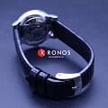 Изяществом привлекает минималистичным циферблатом с римскими цифрами, ярким элементом стали синие стрелки. Классическое исполнение модели придётся по душе девушкам, желающим приобрести универсальный аксессуар на все случаи жизни. Это часы с автоматической системой завода от движений руки владелицы, они оснащены швейцарским автоматическим механизмом ETA 2671 с запасом хода до 38 часов. Движение деталей можно просматривать через прозрачную заднюю крышку. Гладкий стальной безельБезельВнешний ободок, закрепляющий стекло. В спортивных часах так называется поворотное кольцо с делениями на циферблате, выполняет роль таймера – замеряет отрезки времени на шкале. Неподвижный безель – элемент декора. Однонаправленно вращающийся безель на дайверских часах позволяет фиксировать моменты погружения и выныривания на поверхность. удерживает сапфировое стекло, устойчивое к царапинам. Чёрный ремешок из натуральной опойковой кожи имеет тиснение под кожу крокодила. Степень водостойкости - WR 50. Габариты: 30 x 30 x 9,5 мм.