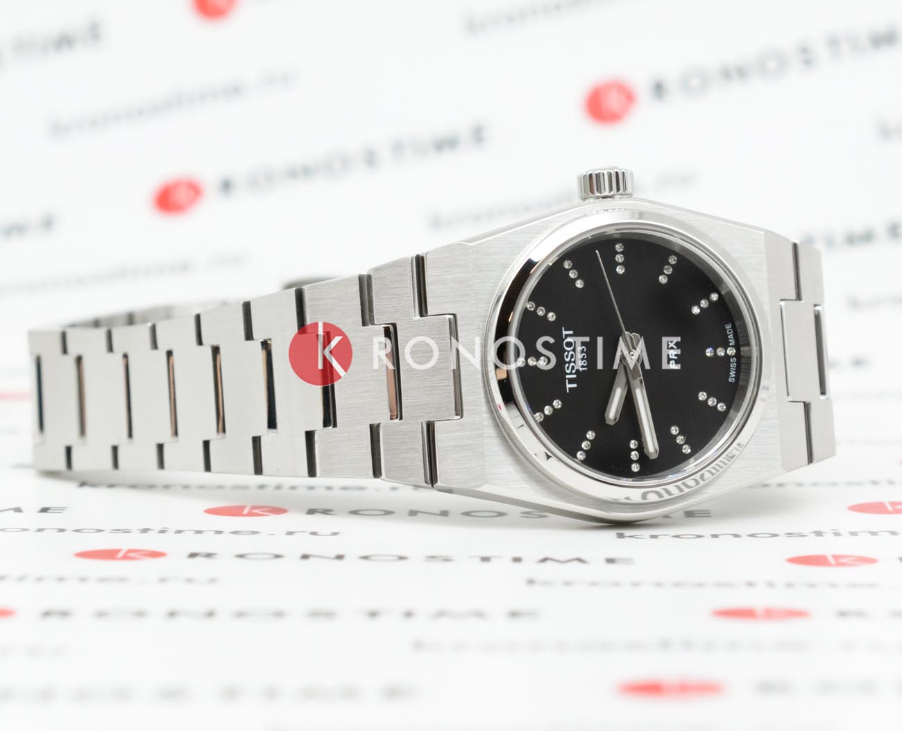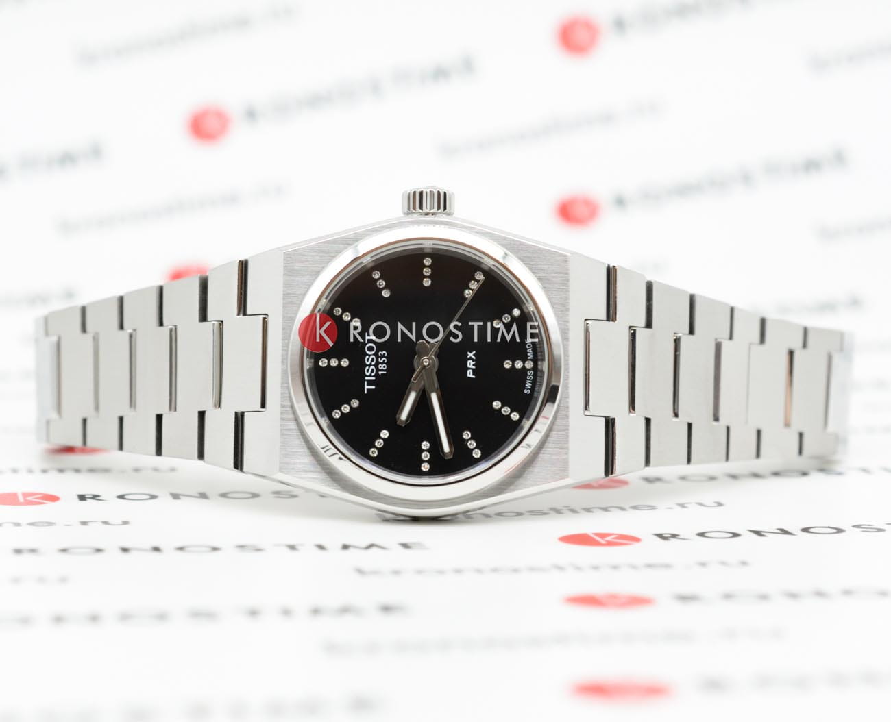 Модель Tissot PRX 25mm (артикул T1370101105600) воплощает элегантность и точность швейцарского часового мастерства. Корпус диаметром 25 мм выполнен из высококачественной нержавеющей стали 316L, обеспечивая прочность и долговечность. Черный циферблат украшен 36 бриллиантовыми маркерами (0,04 карата, чистота VS-SI, цвет Top Wesselton), придающими часам изысканный стиль. Сапфировое стеклоСапфировое стеклоПрочный и надёжный материал из кристалла сапфира синтетического происхождения, характеризующийся особой твёрдостью и устойчивостью к царапинам и повреждениям. с антибликовым покрытием защищает дисплей от царапин и обеспечивает отличную читаемость. Часы оснащены швейцарским кварцевым механизмом с функцией индикатора окончания заряда батареи (EOL)EOLПредставляет собой систему, уведомляющую владельца часов о необходимости замены элемента питания. За 2 недели до полного разряда батарейки секундная стрелка перестаёт ходить чётко и начинает перепрыгивать на 3-4 деления., который своевременно уведомляет о необходимости замены элемента питания. Водонепроницаемость до 100 метров делает модель подходящей для плавания и активного образа жизни. Браслет из нержавеющей стали с бабочковой застёжкойЗастёжка "бабочка"Такой вид застёжки дополняется предохранителями, помогающими избежать случайного раскрытия браслета. Обладают изящным исполнением. и кнопками обеспечивает надежную фиксацию и комфорт при ношении. Tissot PRX 25mm — это сочетание классического дизайна, блеска драгоценных камней и современных технологий, созданное для стильных и уверенных в себе женщин.