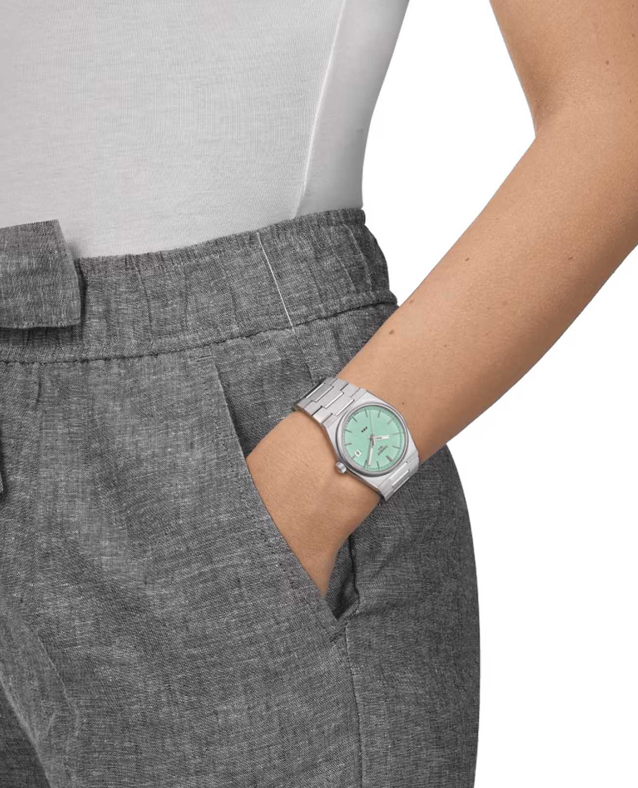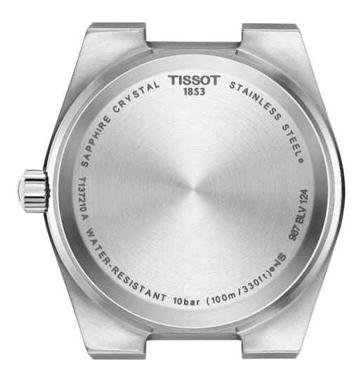 Часы TISSOT PRX 35 ММ T137.210.11.091.00. Защищает циферблат устойчивое к царапинам сапфировое стеклоСапфировое стеклоПрочный и надёжный материал из кристалла сапфира синтетического происхождения, характеризующийся особой твёрдостью и устойчивостью к царапинам и повреждениям.. Стрелки с люминесцентным покрытиемЛюминесцентное покрытиеПозволяет считывать показания времени в темноте. Производители наносят на стрелки, часовые индексы, безель или поверхность циферблата светонакопительный состав, дающий холодное свечение.. Часы имеют водозащиту 100м, в них можно плавать и нырять (без погружений). Стальной браслет, застёжка «бабочка» с кнопкамиЗастёжка "бабочка"Такой вид застёжки дополняется предохранителями, помогающими избежать случайного раскрытия браслета. Обладают изящным исполнением. .