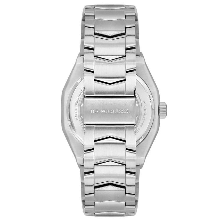 Мужские американские классические часы U.S. Polo Assn. Fundamental USPA1059-01 с кварцевым механизмом с высокой точностью. Минеральное стеклоМинеральное стеклоМинеральное стекло представляет собой искусственно выращенный минерал кварца. Такое стекло отличается особой устойчивостью к повреждениям и царапинам. Уступает по некоторым качествам сапфировому стеклу. устойчивое к появлению царапин, обладающее высокой прозрачностью. Серебристый изысканный корпус изготовлен из нержавеющей стали. Центральные часовая, минутная и секундная стрелки. Окошко даты находится в положении 3 часа. Класс водозащиты: 50 метров, позволит защитить корпус от случайных брызг или капель дождя. Стальной браслет на раскладной застёжкеРаскладная застёжкаТакой тип застёжки используется только на браслетах из металла. Она никогда не раскрывается полностью, происходит разделение на 2 и более частей. Раскладывающая застёжка снизит вероятность потери часов к минимуму. дополняет корпус. Модель подчёркивает индивидуальность владельца и идеально подходит как для повседневного, так и для делового образа.