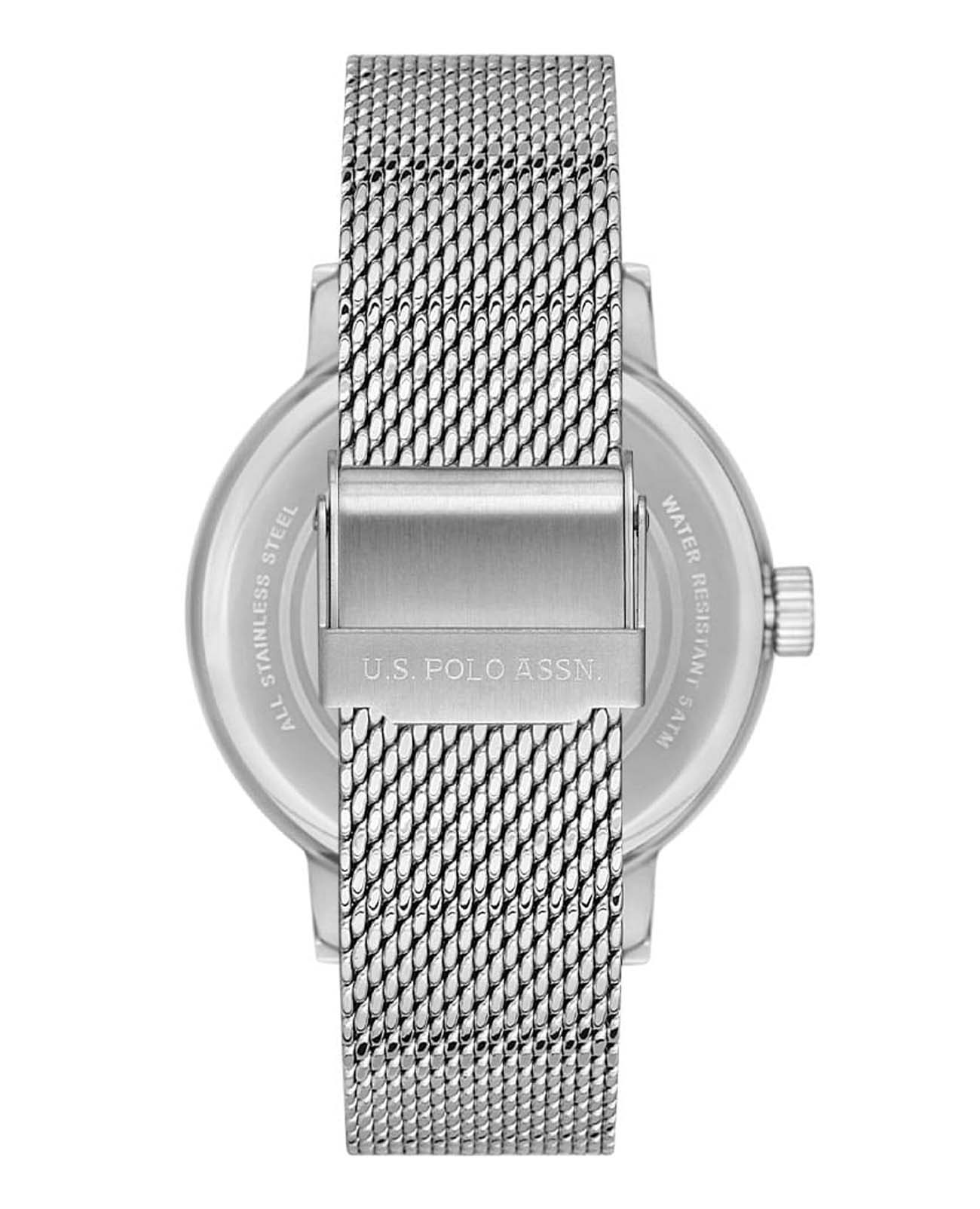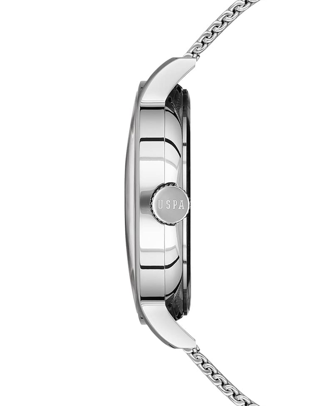 Мужские часы U.S. Polo Assn Fundamental USPA1070-03, кварцевый механизм с высокой точностью. Минеральное стеклоМинеральное стеклоМинеральное стекло представляет собой искусственно выращенный минерал кварца. Такое стекло отличается особой устойчивостью к повреждениям и царапинам. Уступает по некоторым качествам сапфировому стеклу. устойчивое к появлению царапин, обладающее высокой прозрачностью. Корпус изготовлен из нержавеющей стали. Центральные часовая, минутная и секундная стрелки. Окошко даты находится в положении 3 часа. Стрелки с люминесцентным покрытиемЛюминесцентное покрытиеПозволяет считывать показания времени в темноте. Производители наносят на стрелки, часовые индексы, безель или поверхность циферблата светонакопительный состав, дающий холодное свечение.. Класс водозащиты: 50 метров, позволит защитить корпус от случайных брызг или капель дождя. Стальной браслет миланского плетения на раскладном замкеРаскладной замокДанный вариант застежки используется только на часах с металлическим браслетом. Отличительная особенность такого крепления в том, что длина браслета становится универсальной и вы можете самостоятельно отрегулировать нужный вам размер – застежка просто двигается по браслету часов..