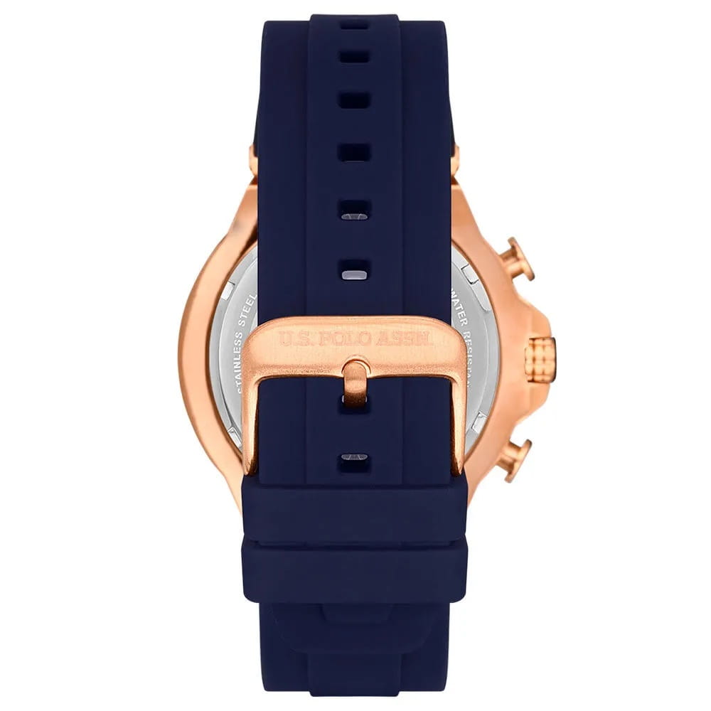 Мужские американские часы U.S. Polo Assn. Crossing USPA1076-04 обладают кварцевым механизмом с высокой точностью. Минеральное стеклоМинеральное стеклоМинеральное стекло представляет собой искусственно выращенный минерал кварца. Такое стекло отличается особой устойчивостью к повреждениям и царапинам. Уступает по некоторым качествам сапфировому стеклу. устойчивое к появлению царапин, обладающее высокой прозрачностью. Изысканный корпус изготовлен из нержавеющей стали с PVD-покрытиемPVDУльтратонкое покрытие наносится в технике вакуумного напыления, сочетает в себе нитрид титана особой прочности со слоем золота или оксида хрома. Несёт в себе декоративную или защитную функцию. цвета розового золота, диаметром 44мм. Лаконичные центральные часовая, минутная и секундная стрелки. 24-х часовой формат времени, день недели вынесены на отдельный циферблат. Шкала тахиметраТахиметрРазмеченная шкала, располагается на ободке или безеле часов. Тахиметр позволяет рассчитать скорость на определённом участке пути, расстояние измеряется в километрах или милях. на безелеБезельВнешний ободок, закрепляющий стекло. В спортивных часах так называется поворотное кольцо с делениями на циферблате, выполняет роль таймера – замеряет отрезки времени на шкале. Неподвижный безель – элемент декора. Однонаправленно вращающийся безель на дайверских часах позволяет фиксировать моменты погружения и выныривания на поверхность. с PVD-покрытиемPVDУльтратонкое покрытие наносится в технике вакуумного напыления, сочетает в себе нитрид титана особой прочности со слоем золота или оксида хрома. Несёт в себе декоративную или защитную функцию. черного цвета. Стрелки и метки с люминесцентным покрытиемЛюминесцентное покрытиеПозволяет считывать показания времени в темноте. Производители наносят на стрелки, часовые индексы, безель или поверхность циферблата светонакопительный состав, дающий холодное свечение., обеспечивающим хорошую читаемость в темноте. Класс водозащиты: 50 метров позволит защитить корпус от случайных брызг или капель дождя. Силиконовый ремень со стандартной застежкой обеспечивает комфорт и удобство в использовании, добавляя завершающий штрих к этому стильному и высокоэффективному аксессуару. Это практичный и стильный инструмент для активной повседневности, объединяющий точный механизм и удобство.