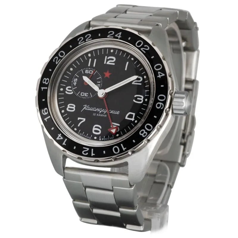 Мужские российские механические наручные часы Восток Командирские 02019А, механический механизм (автоматический калибр) с высокой точностью. Класс водозащиты: 200 метров, позволит плавать, нырять и заниматься другими водными видами спорта. Стрелки с люминесцентным покрытиемЛюминесцентное покрытиеПозволяет считывать показания времени в темноте. Производители наносят на стрелки, часовые индексы, безель или поверхность циферблата светонакопительный состав, дающий холодное свечение.. Вращающийся безельБезельВнешний ободок, закрепляющий стекло. В спортивных часах так называется поворотное кольцо с делениями на циферблате, выполняет роль таймера – замеряет отрезки времени на шкале. Неподвижный безель – элемент декора. Однонаправленно вращающийся безель на дайверских часах позволяет фиксировать моменты погружения и выныривания на поверхность. из нержавеющей стали с PVDPVDУльтратонкое покрытие наносится в технике вакуумного напыления, сочетает в себе нитрид титана особой прочности со слоем золота или оксида хрома. Несёт в себе декоративную или защитную функцию. покрытием. Дополнительная 24-часовая стрелка. Механизм калибра 24 мм с боковой секундной стрелкой. Автоподзавод с предохранительным устройством от перезаводки пружины. Частота: 19800 полуколебаний/час. Браслет с раскладной застёжкойРаскладная застёжкаТакой тип застёжки используется только на браслетах из металла. Она никогда не раскрывается полностью, происходит разделение на 2 и более частей. Раскладывающая застёжка снизит вероятность потери часов к минимуму..