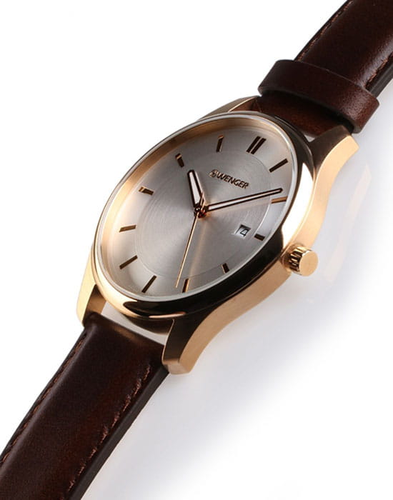 Мужские швейцарские часы с календарём Wenger 01.1441.107, кварцевый механизм с высокой точностью. Класс водозащиты: 30 метров, позволит защитить корпус от случайных брызг или капель дождя. Корпус часов изготовлен из стали, золотистого цвета.